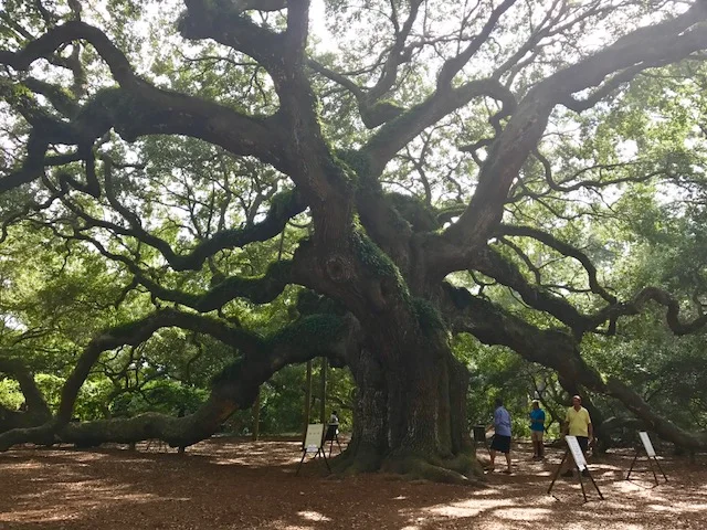 Last August I had the privilege of touching the trunk of a 400-year-old tree. Words failed me every time I tried, not to only understand for myself, but then describe what I felt to anyone else. What I CAN say is that tree has seen a lot, and what I didn't expect to feel was the sadness and solemn, yet deep, acceptance. When I really stop to feel and step inside the tree's life even for a moment, wouldn't I also feel sad? Having outlived all my friends and family, and then having to witness humans killing, raping, and abusing other humans? The tree was right near many southern and very historic plantations on Wadmalaw Island outside Charleston. The whole island felt like we stepped back in to time: a time full of heartache and oppression.